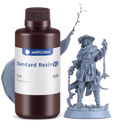 ANYCUBIC Standard Resin V2, 3D Printer Resin med Hög Hållfasthet och Seghet, 3D UV Resin med Hög Precision och Låg Lukt, Mycket Kompatibel med LCD/DLP/SLA 3D-Skrivare, Grå 500g