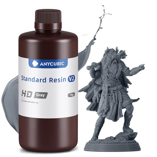 ANYCUBIC Standard Resin V2, 3D Printer Resin med Hög Hållfasthet och Seghet, 3D UV Resin med Hög Precision och Låg Lukt, Mycket Kompatibel med LCD/DLP/SLA 3D-Skrivare, HD Grå 1kg