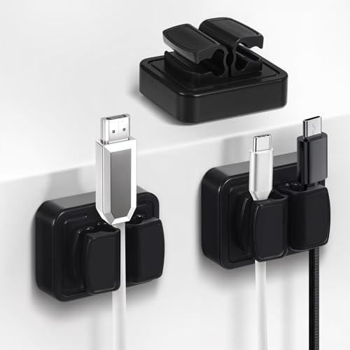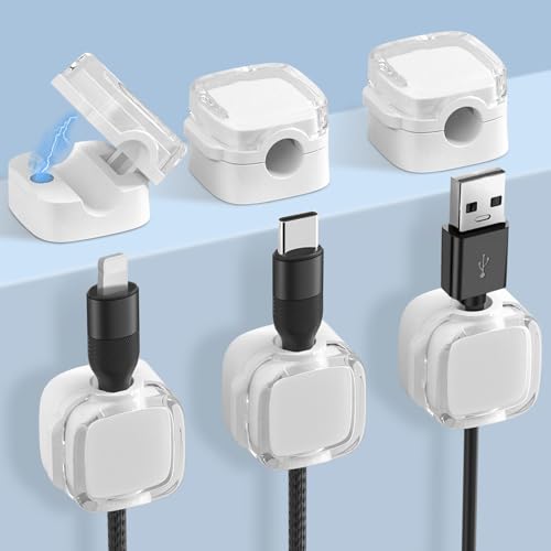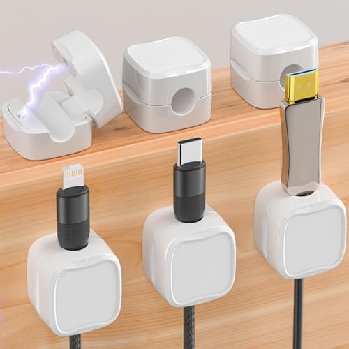 AiQInu 6 st kabelklämmor, magnetisk självhäftande kabelklämma, magnetisk sladdhållare för skrivbord, kabelhantering för laddningskablar, ljudkabel, USB