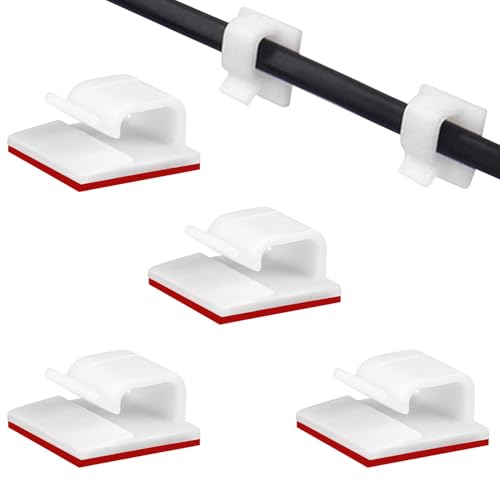 SOULWIT®50 st självhäftande kabelhanteringsklämmor, kabelorganiserare självhäftande kabelklämmor sladdhållare för TV PC laptop ethernet kabel skrivbord hem kontor (Vit)