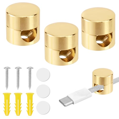Gosknor 3 Guld Stycken Kabelankare för Skrivbord, Sladdhållare för Telefonladdare Kabelklämmor Ledningsorganisatör av Aluminium Kontorshem Skrivbordsvägg Nattduksbord