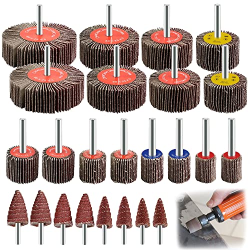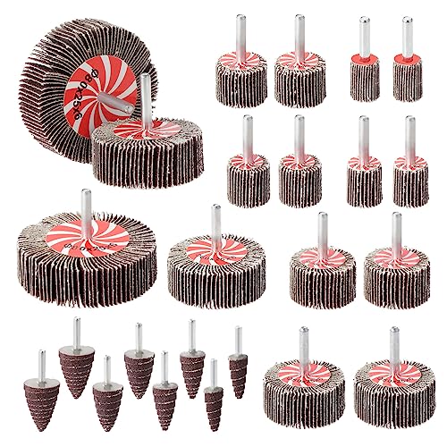 24 stycken fläktslipar, lamellslipar, trä, slipfäste för borrmaskin, sladdlös skruvdragare, rak slipmaskin, lamellrulle, korn 80, polerskiva, slippapper med 6 mm skaft (24)
