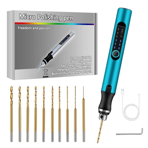 Comius Sharp Elektrisk miniborr 3 hastigheter, sladdlös USB-uppladdningsbar borrmaskin med 10 x spiralborr (0,6–2,2 mm) miniborr för smyckestillverkning av harts plast trä
