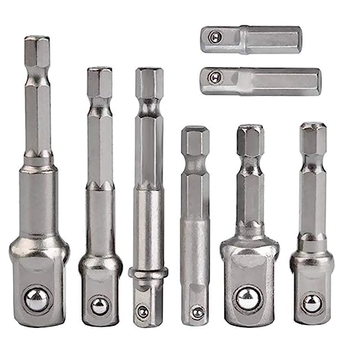 CYWVYNYT Uttagsadapter, 8-delat set, 1/4-tums sexkantsadapter till 1/4 tum, 3/8 tum, 1/2 tums hylsnyckel, för borrmaskin och sladdlös skruvdragare hylsnycklar och uttag, bithållare
