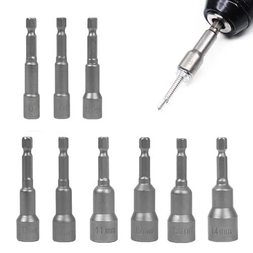 Okaywork Magnetiska set 8 mm – sexkantiga hylsor, 1/4 tum, hona, metrisk sexkantsadapter för tillbehör till elektrisk borrmaskin eller sladdlös skruvdragare (6–14 mm)