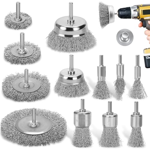 DazSpirit 12-delat trådborstset, mässingbelagd stålborste, sladdlös skruvdragare och mässingsborste, borrmaskin med 1/4-tums grytborstsats för att avlägsna rost/korrosion/färg