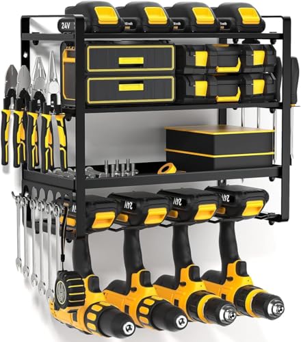 YYR Väggmonterad organisatör för elverktyg, förvaringsställ för sladdlös borrmaskin, hållare för batteriverktyg med laddningsstation för garageorganisering, verkstad, hylla, skjul, 41 cm, 4 fack