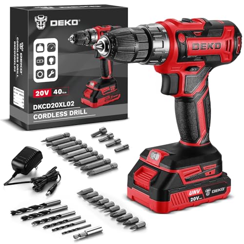 DEKO PRO Sladdlös borrmaskin på 20 V, eldrivet borrverktygsset, med batteri och laddare, röd
