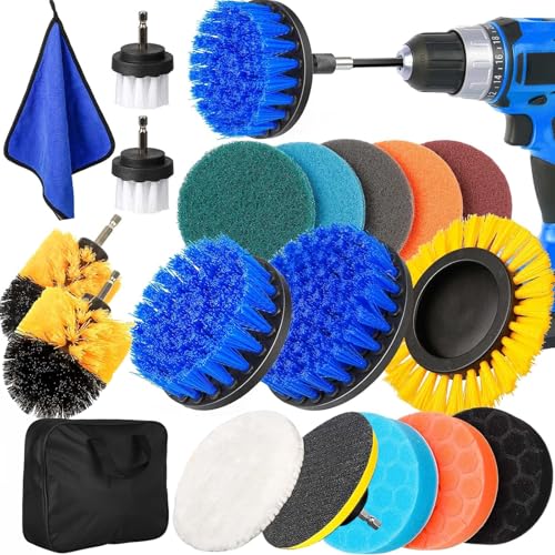 YOCOLE 20 stycken borstfästen sladdlös skruvdragare, borrmaskin, borrborstset Power Scrubber rengöringsborste för fälgar, matta, badrum, bil, kakel, golv