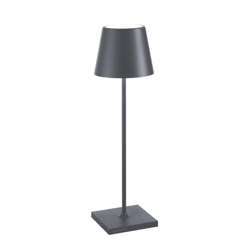 Zafferano, Poldina Pro-Lampa, Uppladdningsbar Sladdlös Bordslampa med Touchkontroller, Även Användbar som Utomhuslampa, Dimmer, 2200-3000 K,Höjd 38 CM, Färg Mörk Grå