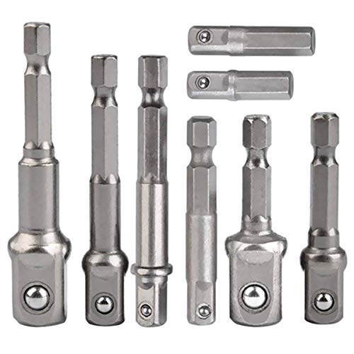 Hylsadapter, 8-delat Set, 1/4 Tum Sexkantsadapter Till 1/4", 3/8", 1/2" Hylsa, för Borr och Sladdlös Skruvmejsel, Hylsnyckelmuttrar och Hylsor, Bitshållare