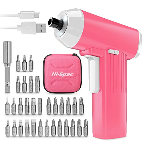 Hi-Spec 3,6 V USB-uppladdningsbar elektrisk rosa batteriskruvmejsel med USB-kabel: Mini-sladdlös skruvmejsel med 33 bitars storlek- Inkluderar praktisk väska