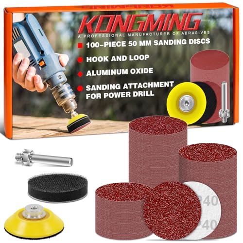 KONGMING Slippapper 50 mm kardborreband 100 stycken korn 40 slipskivor 50 mm kardborrfäste för sladdlös skruvmejsel