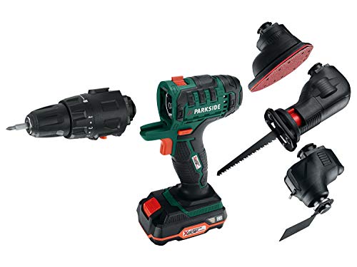 Parkside 4-i-1 sladdlös skruvmejsel med flera verktyg, multifunktionsslipare, sticksåg, borr