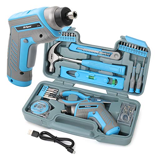 Hi-Spec 35-delars gör-det-själv-verktygsset med uppladdningsbar USB sladdlös skruvmejsel. För reparationer och underhåll i ett praktiskt fodral - Blå