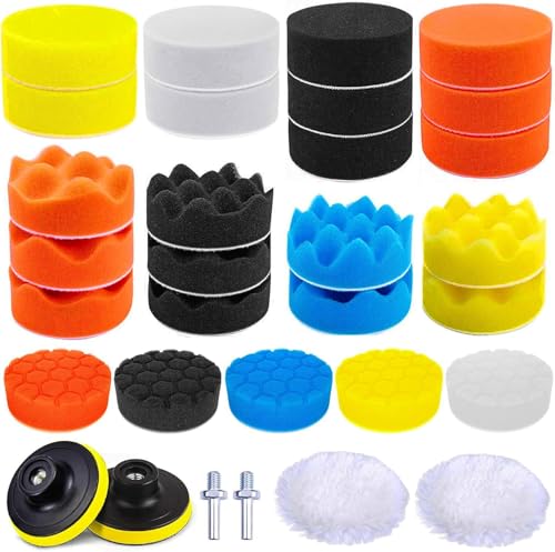 BASVII 31st poleringsfäste sladdlös skruvmejsel, poleringssvampset 3 tum för M10 bilpolermaskin borradapter, poleringssvampset svamp poleringshätta poleringsdyna för polermaskin