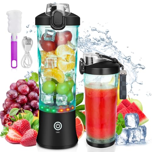 Rainpal Bärbar Blender för Shakes och Smoothies, 600mL USB-Laddningsbar Bärbar Blender med Kopplock, 6 blad, Sladdlös Stavmixer typ C, BPA-Fri Smoothiekopp för Utomhusbruk, Sport