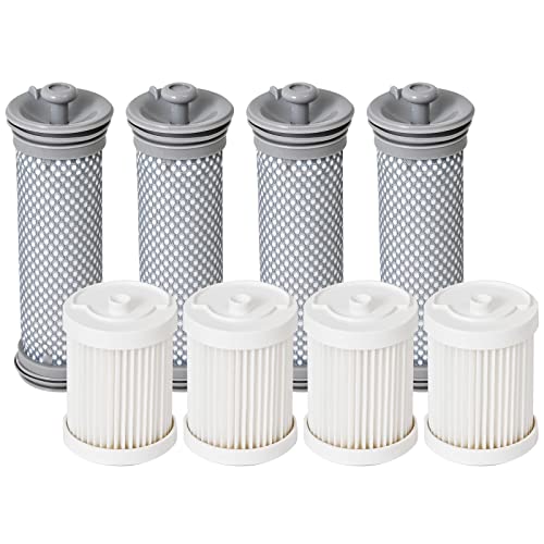 LesinaVac 8-pack ersättningsfiltersats för Tineco A10/A11 Hero, A10/A11 Master & PURE ONE S11/S12/X, PWRHERO11 Snap sladdlösa dammsugare, 4-pack förfilter och 4-pack inlägg filter