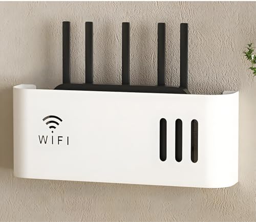 HFGHGDF routerhylla, wifi-routerförvaringslådor, väggmonterad WiFi-kabelbox hylla sladdskydd organiserare för förvaring av kablar, routrar (vit)