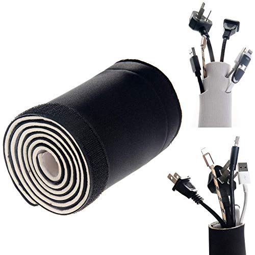 Neopren kabelhylsa [2 x 3 meter totalt 6 m] justerbar kabelorganisering skyddssystem med krok och ögla, kontor, hem, sladdskydd, justerbar, svart/vit TKB5061-2x
