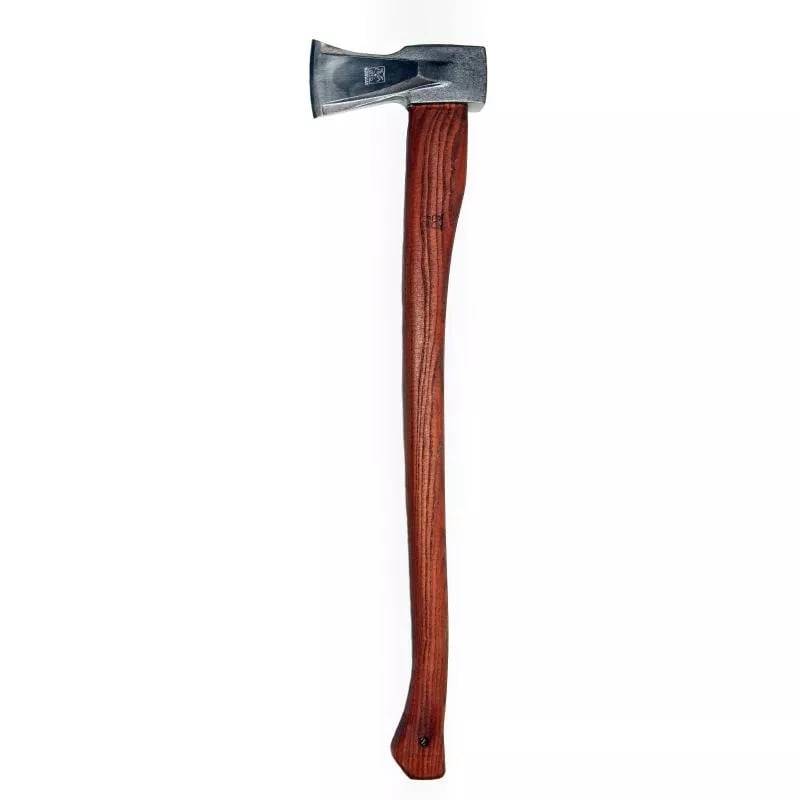 Xforst klyvyxa yxa släggyxa, med 80 cm trähandtag och 2,6 kg blad av polerat kolstål. Inkluderar ett brunt läderfodral.