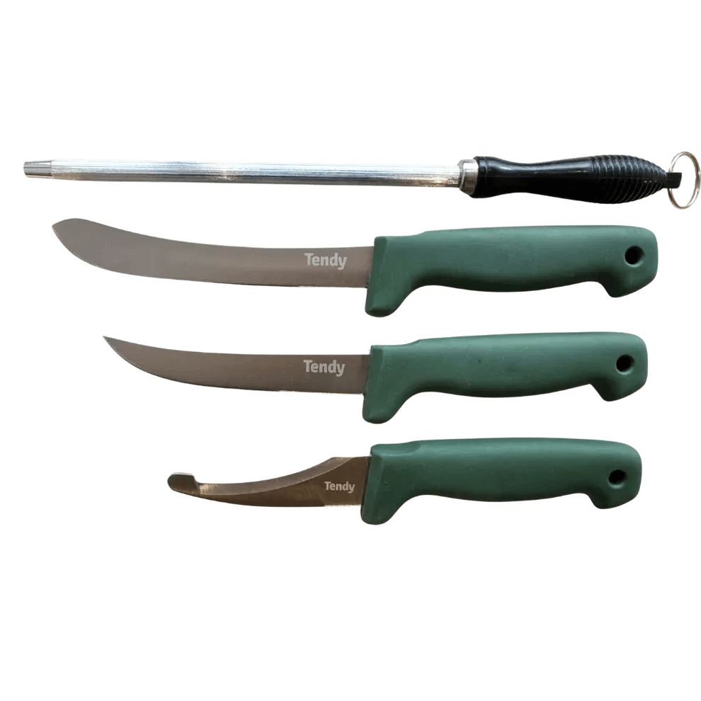 Jakt-/Slaktset, 4 knivar + skärpstål - Giesser