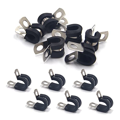 BESTYCHAO 12 st gummifodrade P-klämmor, 6 mm (1/4 tum) rörklämmor rostfritt stål slangklämmor, P-klämmor för slang, kabel, rörmontering