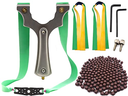 AUVIM Jaktstenslangbella, set, zwill, slangbella, för jakt, rostfritt stål, professionell slangbella, katapult med 4 reserv, gummiband och 200 spinnboll för sport och utomhus