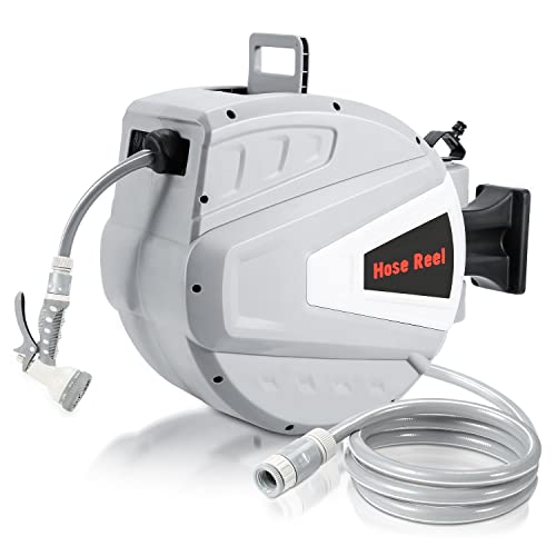 Tubiaz Slangtrumma 30 m väggmontering, trädgårdsslang trumma med automatisk retdragning, slangbox 180 graders rotation, vattenslang trumma för trädgårdsbevattning (grå)