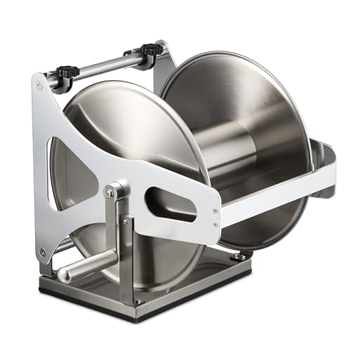 Relaxdays Slangvinda rostfritt stål, slangvinda tom, golv och vägg, för 40 m trädgårdsslang, slangrulle, silver, 43,5 x 43,5 x 31,5 cm