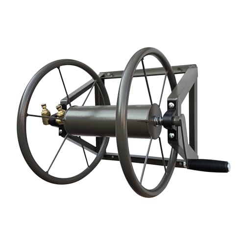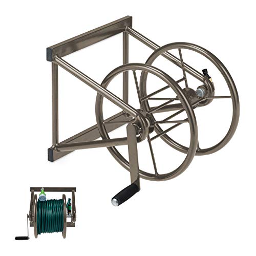 Relaxdays Slangrulle, stål, för 60 m slang, 3/4 tum anslutningar, väggslanghållare HBT: 36 x 55 x 50 cm, brun