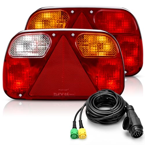 Aissom Fanali Bak Trailer Sats, Bakljus för släpvagn, släpvagnsbelysning 13 poler, 12V bakljus släpvagn med 6 funktioner, 5,5 m kabel, E11-certifierad