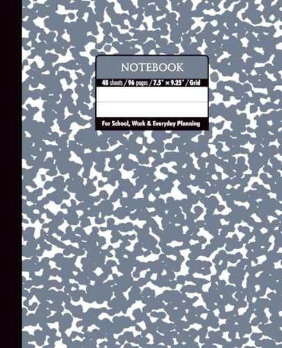 Slate Gray & Black & White Marble Composition Notebook – Grid, 96 Pages, 7.5" × 9.25", Soft Matte Cover: Perfect for math, science, design projects, journaling, and daily planning
