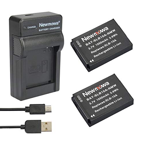 Newmowa® SLB-10A ersättningsbatteri (2-pack) och bärbart USB-laddarsats för Samsung SLB-10A, JVC BN-VH105 och Samsung ES50, ES55, ES60, EX2F, HMX-U10, HMX-U20, HZ10W, HZ15W