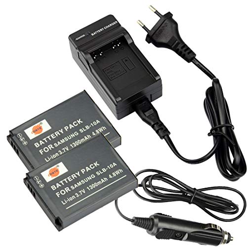 DSTE® (2-pack) Ersättningsbatteri och DC23E reseladdare kompatibel med Samsung SLB-10A P800 P1000 PL50 PL51 PL55 PL60 PL65 PL70 SL102 SL202 SL310 SL420 SL620 SL720 SL820 TL9 WB150F WB250F WB350F WB500