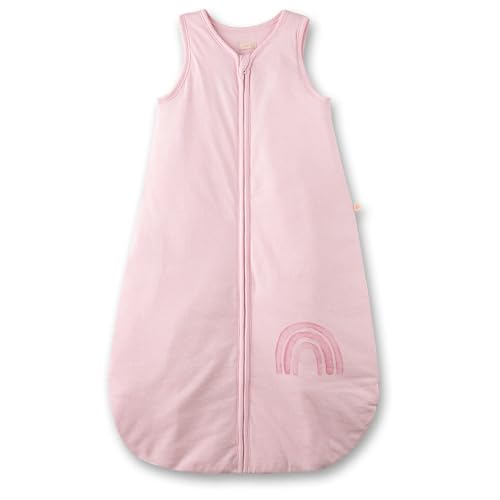 SANETTA babysovsäck med fötter rosa | Praktisk och bekväm unisex-sovsäck av ekologisk bomull. Babysovsäck med dragkedja och regnbågstryck | Baby Sleeping Bag