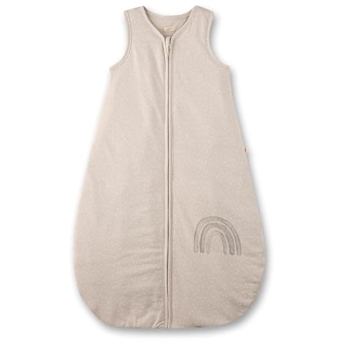 SANETTA babysovsäck med fötter beige | Praktisk och bekväm unisex-sovsäck av ekologisk bomull. Babysovsäck med dragkedja och regnbågstryck | Baby Sleeping Bag