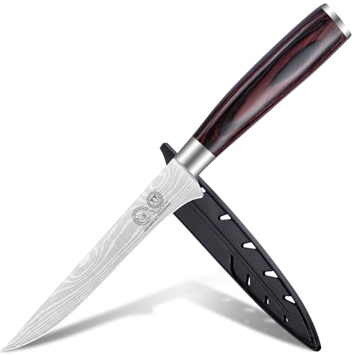 XYJ Authentic Since 1986,5.5 Inch Boning Knife With Sleeve,Stainless Steel Razor Sharp Fish Fillet Knife,Meat Cleaver,Carving Deboning Knife,Pakkawood Handle