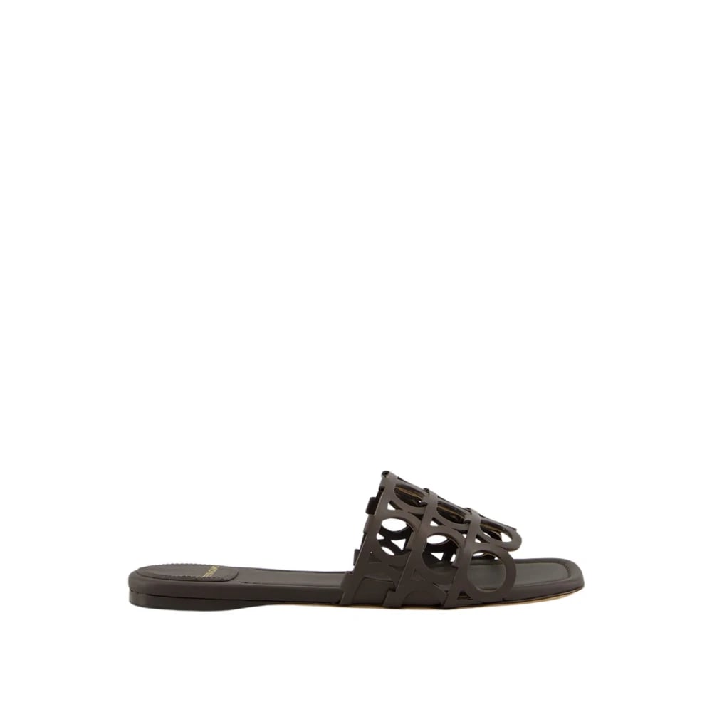Ferragamo, Skor , Dam, 39 1/2 EU, Läder, Brun Kedja Läder Slides