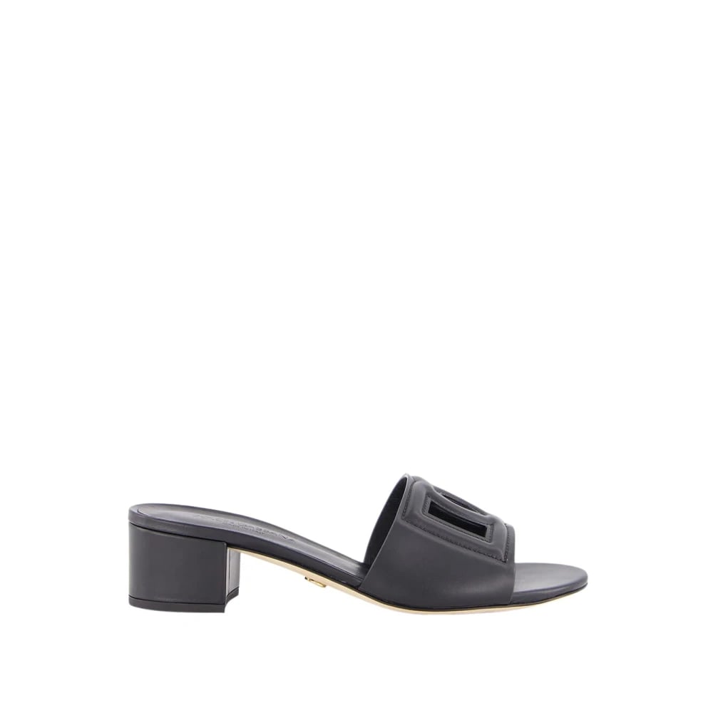 Dolce & Gabbana, Skor , Dam, 35 EU, Läder, Svart Läder Klackar Slides