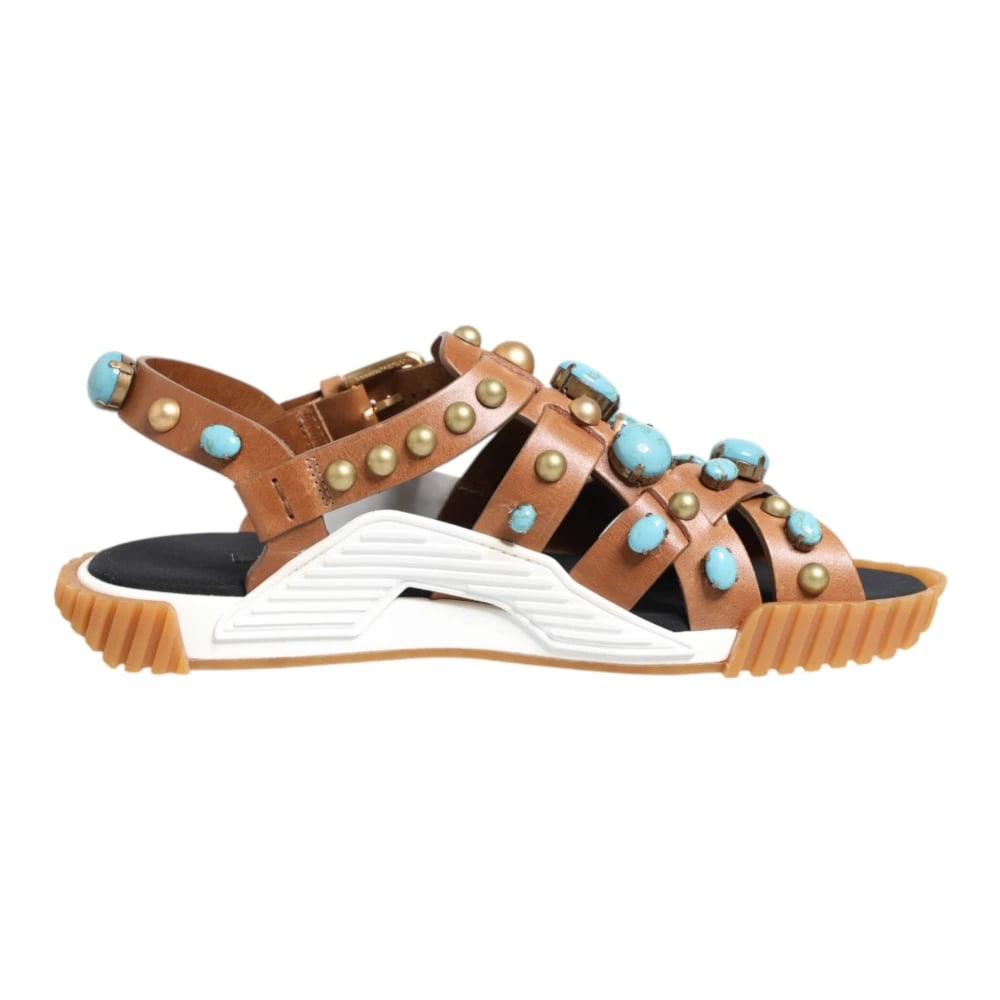 Dolce & Gabbana, Skor , Dam, 44 EU, Läder, Brun Läder Studs Slides Sandaler