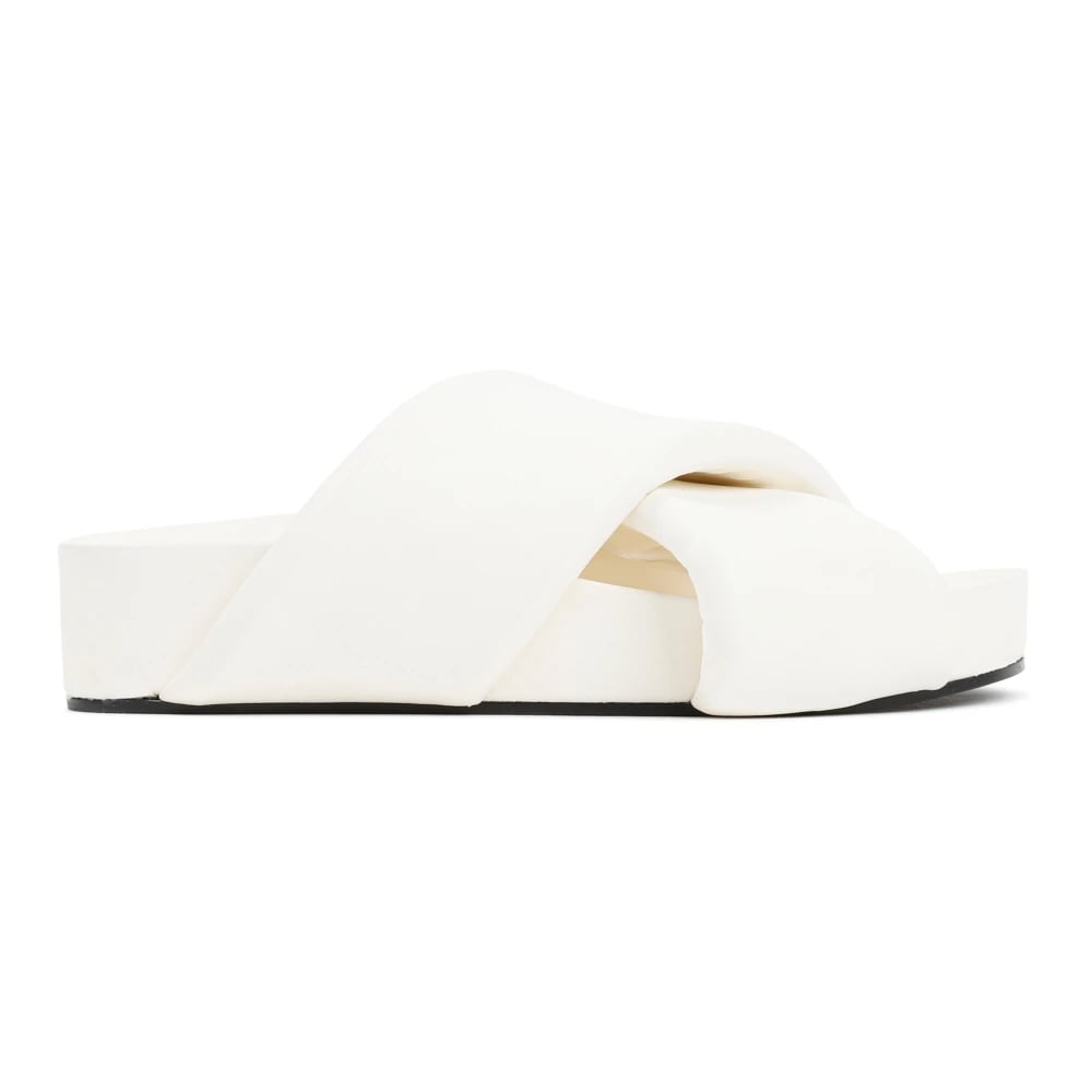 Jil Sander, Skor , Dam, 36 EU, Läder, Vita Läder Vadderade Slides Sandaler