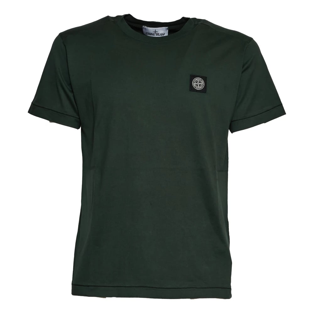 Stone Island, Toppar , Herr, 2Xl, Bomull, Slim-Fit Logo Patch T-shirt Grön