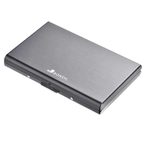 BONSYL® RFID Slim Metal Kreditkortshållare Plånbok för kvinnor och män, Kreditkortshållare RFID Skydd Signal Shield.(6 Kortplatser-Svart)