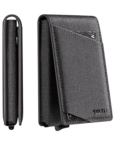 VULKIT Slim Plånbok för män Pop Up-korthållare Minimalistisk Bifold-plånbok RFID-blockerande magnetisk stängning Rymmer 12 kort (Grå)