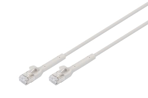 DIGITUS LAN-kabel Cat 6A – 0,5 m – 1 styck – 10 Gbps – böjlig kontakt – Slim-version AWG 32-7 – RJ45 nätverkskabel – F-FTP – PoE+ – LSZH – Kompatibel med Cat7, Cat6, Cat5e – Grå