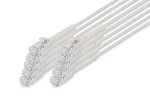 DIGITUS LAN-kabel Cat 6A – 0,5 m – 10 stycken – 10 Gbps – böjlig kontakt – Slim-version AWG 32-7 – RJ45 nätverkskabel – F-FTP – PoE+ – LSZH – Kompatibel med Cat7, Cat6, Cat5e – Grå