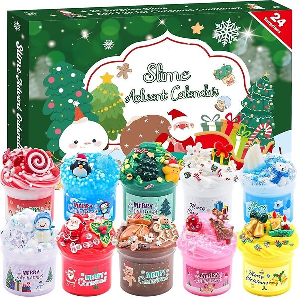 slime adventskalender 2025 för pojkar flickor, gör-det-själv fluffig kristall slime barn jul fördel kalender 24 dagar, jul överraskningar present med gör-det-själv slime kit