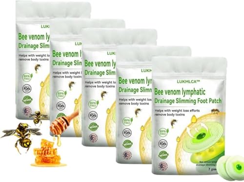 Lukmlca Bee Venom Foot Patch,Lukmlca Bee Venom Lymphatic Drainage Slimming Foot Patch,Bee Venom Lymphatic Drainage & Slimming Patches Reduce Body Accumulation (5 pack)
