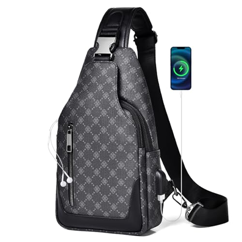 SUCIKORIO Bröstficka Herr Läder Vattentät Liten Axelväska Axelväska Herr Sling Crossbody Bag Med USB-gränssnitt Och Hörlursuttag Herrväska För Resor, Festivaler, Män, Svart